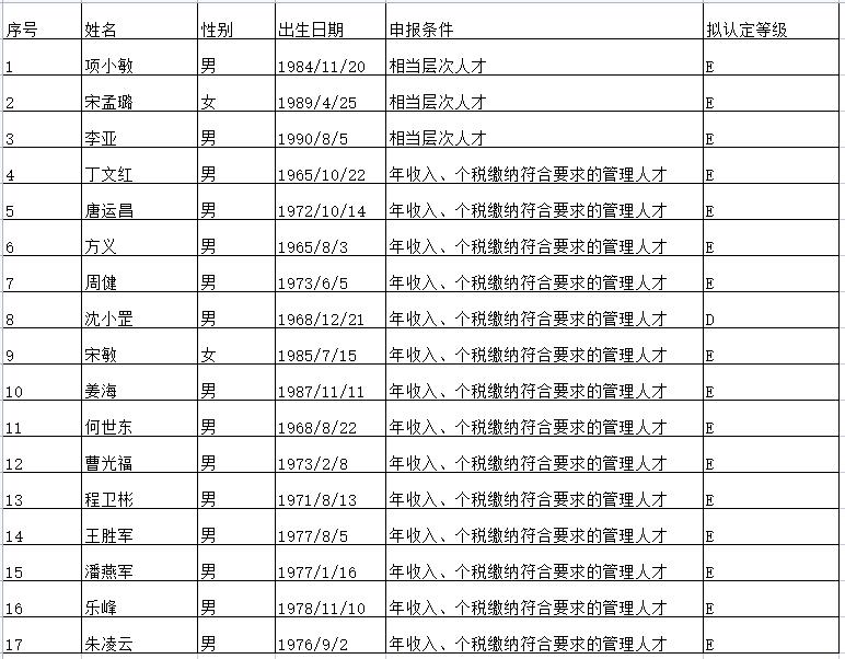 項小敏等17名同志(所屬部門:巢湖市人力資源和社會保障局;工作單位:安徽皖維高新材料股份有限公司)經(jīng)審核,擬申請認定合肥市重點企業(yè)高層次人才。