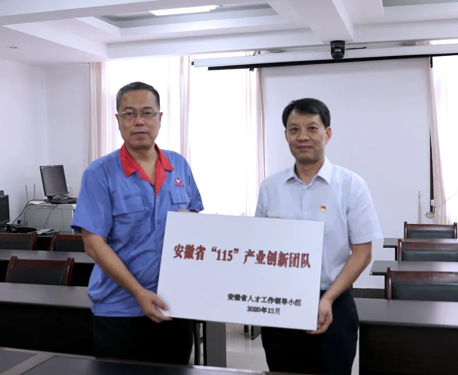 近日,安徽省人才工作領(lǐng)導(dǎo)小組辦公室下發(fā)第十三批“115”產(chǎn)業(yè)創(chuàng)新團(tuán)隊(duì)名單,此次評(píng)審全省僅評(píng)選出50個(gè)“115”產(chǎn)業(yè)創(chuàng)新團(tuán)隊(duì),公司TFT-LCD光學(xué)膜用PVA研發(fā)創(chuàng)新團(tuán)隊(duì)成功入選。9月28日下午,省國(guó)資委企業(yè)領(lǐng)導(dǎo)人員管理處處長(zhǎng)金進(jìn)率隊(duì)來(lái)公司,為公司創(chuàng)新團(tuán)隊(duì)授牌。