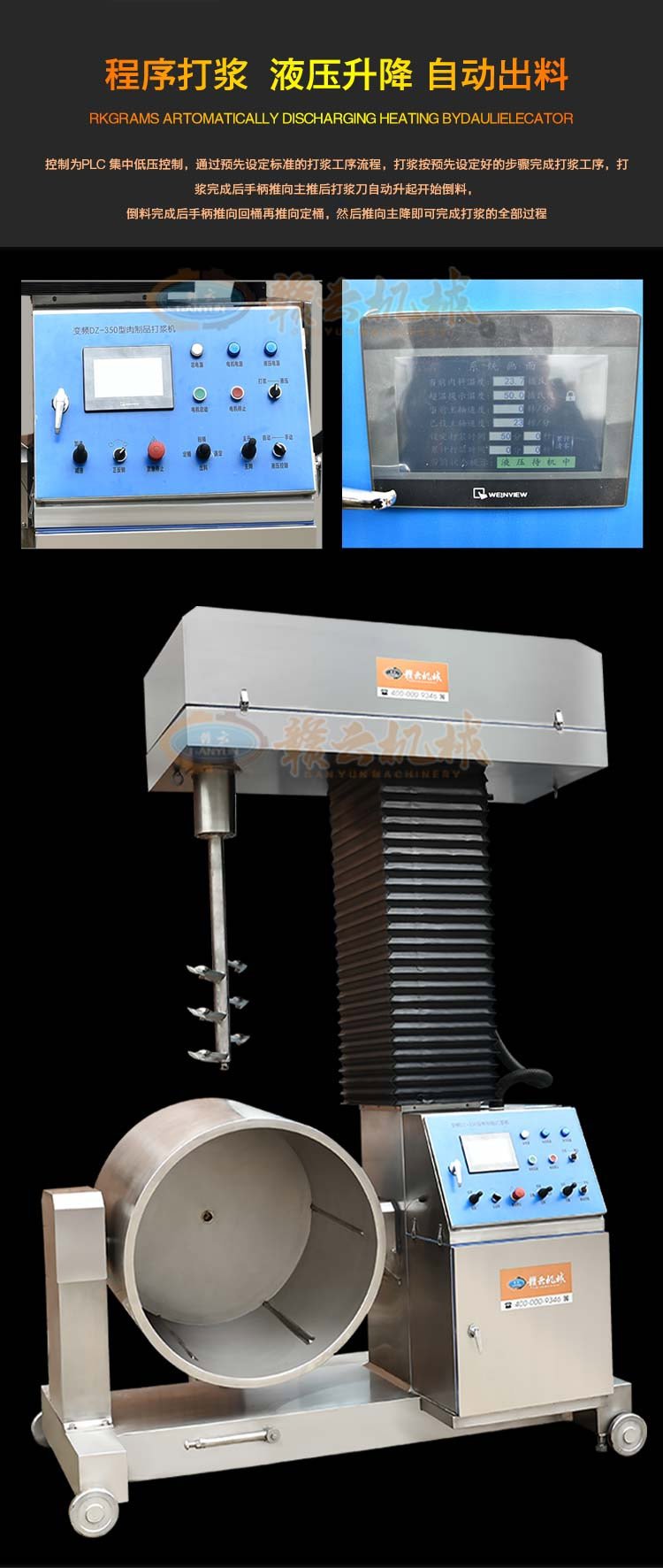 變頻調(diào)速液壓打漿機是肉丸、貢丸、魚丸、臺灣烤腸等多種肉制品(特別為中高檔產(chǎn)品)的主要打漿設(shè)備,其產(chǎn)品的口感效果、組織結(jié)構(gòu)、成本控制等技術(shù)環(huán)節(jié)均在于打漿機的選用,在打漿升降過程中穩(wěn)定性好,打漿速度快,機座穩(wěn)固可靠。