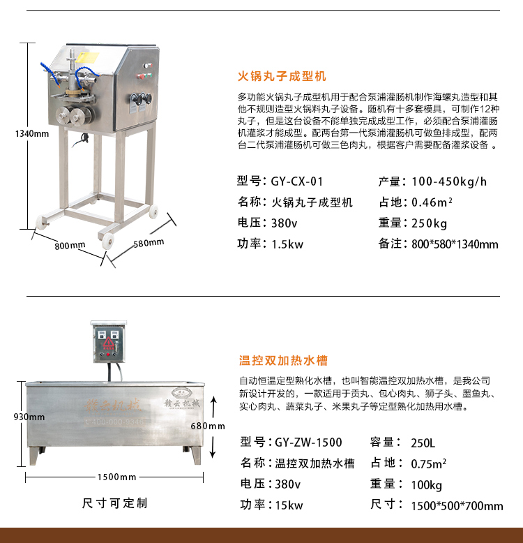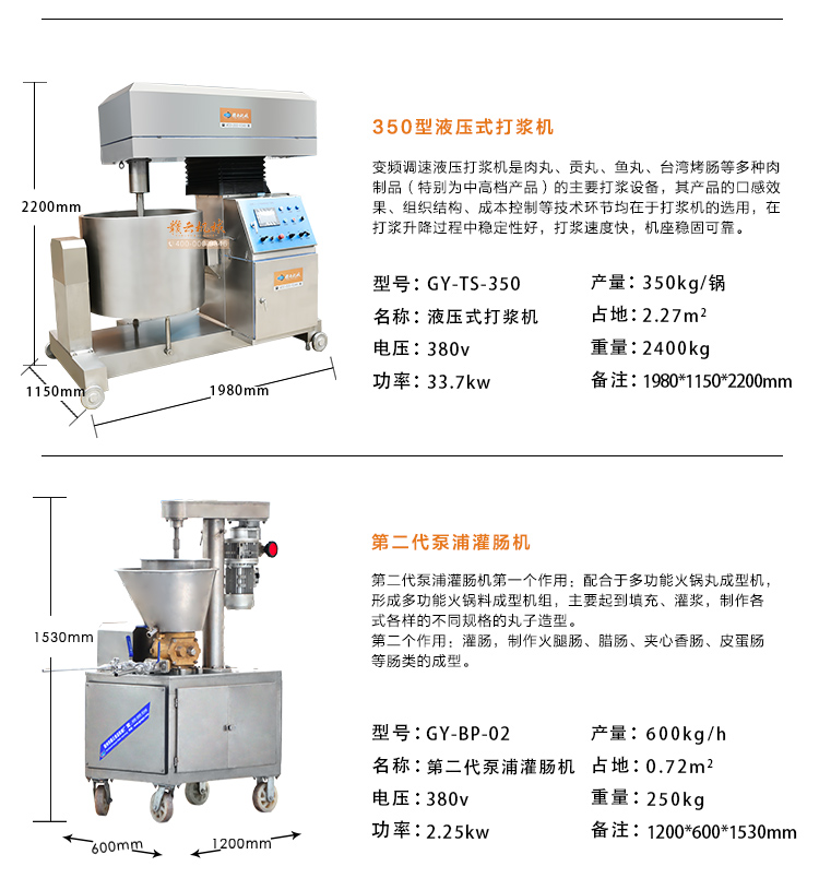 贛云推出的新款火鍋丸子成套設(shè)備由凍肉刨肉機、凍肉絞肉機、350型液壓打漿機、火鍋丸子成型機組、雙槽電加熱溫控水槽和雙室真空包裝機組合而成,日產(chǎn)可達3噸以上。
