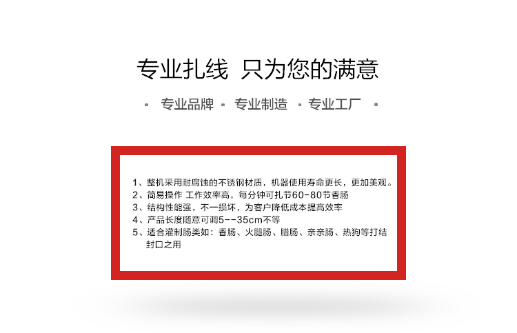 電動(dòng)打結(jié)機(jī),香腸打結(jié)機(jī),腸類(lèi)自動(dòng)打結(jié)設(shè)備,冬季灌腸打結(jié)好設(shè)備,香腸自動(dòng)打結(jié)機(jī),采用不銹鋼材質(zhì)設(shè)計(jì),打結(jié)長(zhǎng)度5-35cm可自由調(diào)節(jié)。進(jìn)料口直接50mm.