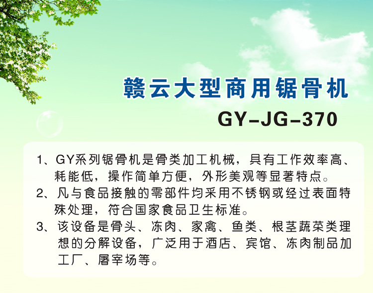 370型商用鋸骨機(jī),先進(jìn)食品機(jī)械生產(chǎn)制造,質(zhì)量鑄就贛云品牌!好品質(zhì),值得信賴。