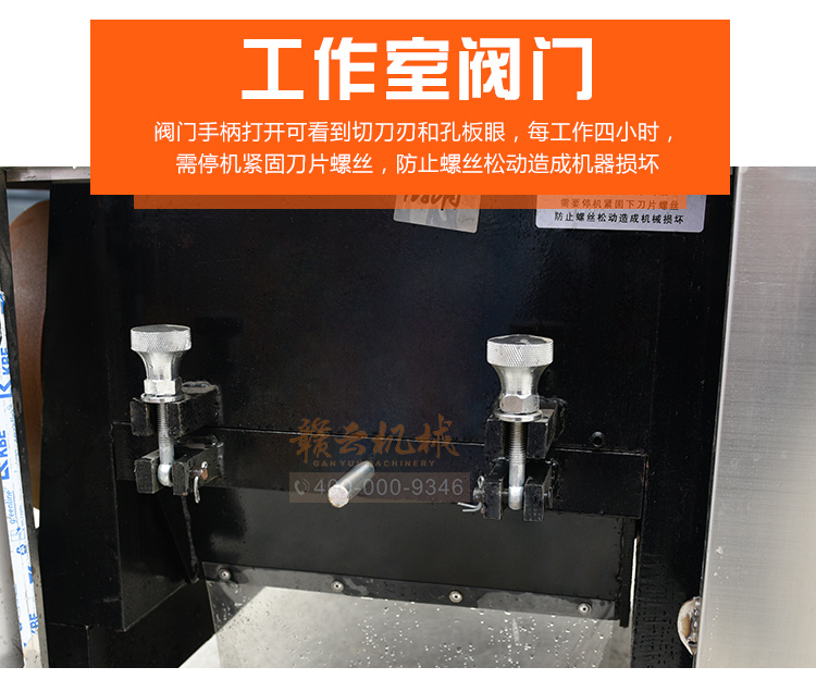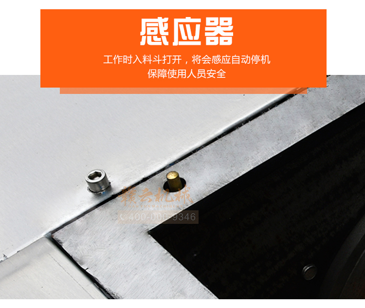 b)開(kāi)機(jī)空轉(zhuǎn)檢查切刀轉(zhuǎn)向是否正確,如出現(xiàn)方向反轉(zhuǎn),請(qǐng)對(duì)換三相電源線接順序;確定切刀轉(zhuǎn)向正確后,啟動(dòng)空轉(zhuǎn)3分鐘,扣緊送投料室,使保護(hù)開(kāi)關(guān)完全接觸,符合破碎條件,即可投料生產(chǎn)。