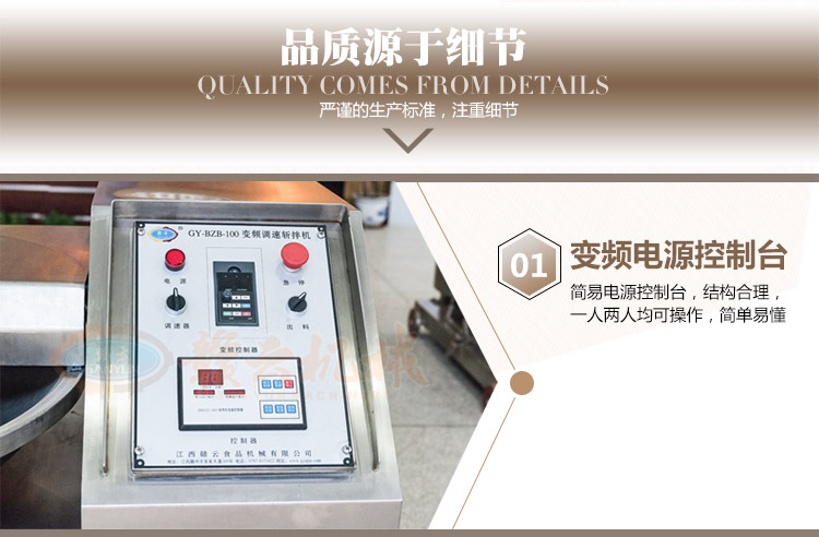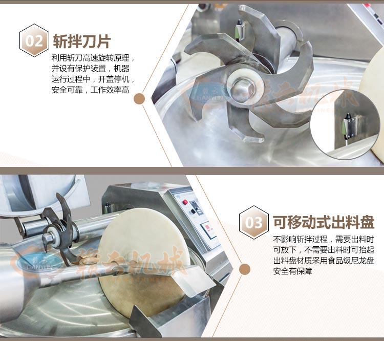 斬拌機是肉類制品生產(chǎn)制作工藝中的一個關(guān)鍵設(shè)備,斬刀的高速旋轉(zhuǎn)將原料斬碎,同時料鍋的旋轉(zhuǎn)使原料斬拌均勻。適用于制作腸類、丸類等肉制品加工設(shè)備,它不僅能將塊狀原料精細的切碎,還能同時將其它的原料,如水、調(diào)味品等附加原料一起攪拌成均勻的乳狀物,提高原料的乳化程度,且不會出現(xiàn)拖油現(xiàn)象,對改善產(chǎn)品的口感,提高產(chǎn)品的出品率起到了關(guān)鍵的作用。適用范圍:廣泛應(yīng)用于蔬菜加工、肉類加工、豆制品加工等,是生產(chǎn)肉丸,烤腸類、千頁豆腐、魚豆腐,餡料斬切加工,雞蛋干制作等的推薦設(shè)備。