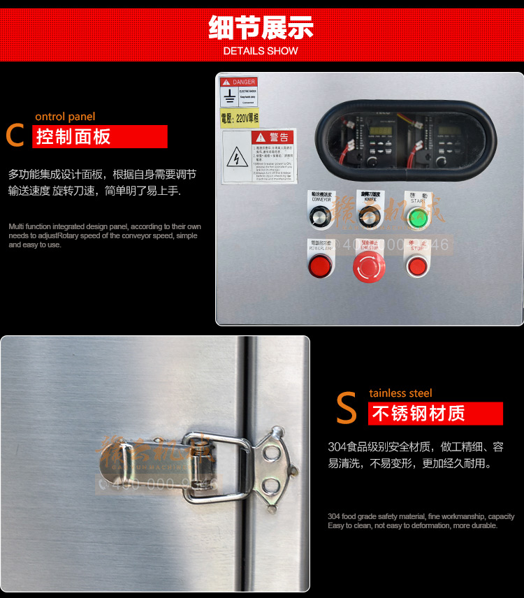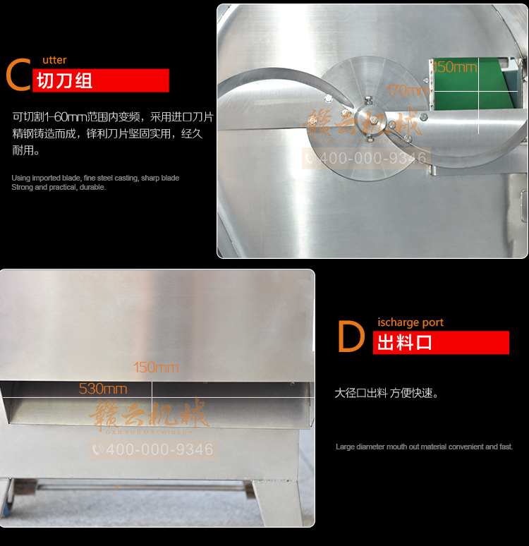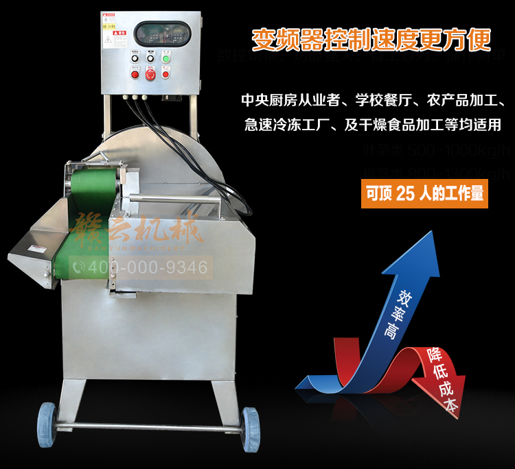 中央廚房?jī)舨思庸ぴO(shè)備之一_贛云牌150型數(shù)字切菜機(jī),引進(jìn)先進(jìn)技術(shù),利用斬刀快速切割原理設(shè)計(jì),適合各類葉菜類,球根類的切割工序,1-60mm范圍內(nèi)變頻可調(diào),適合多元化中央廚房參與食堂切配之用,贛云機(jī)械,掌握肉丸加工成套設(shè)備,中央廚房?jī)舨嗽O(shè)備核心技術(shù),咨詢電話400-000-9346