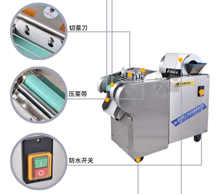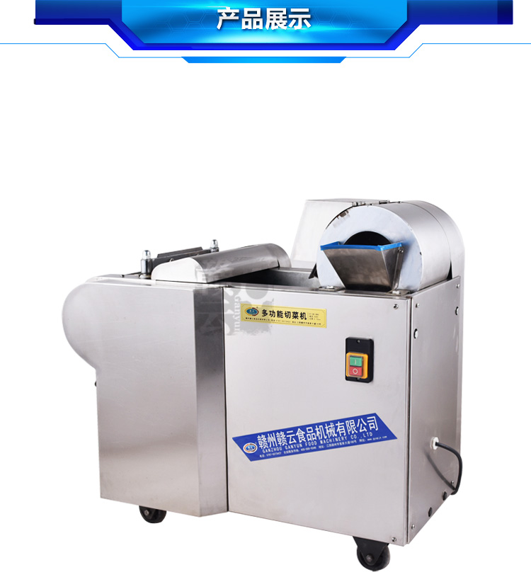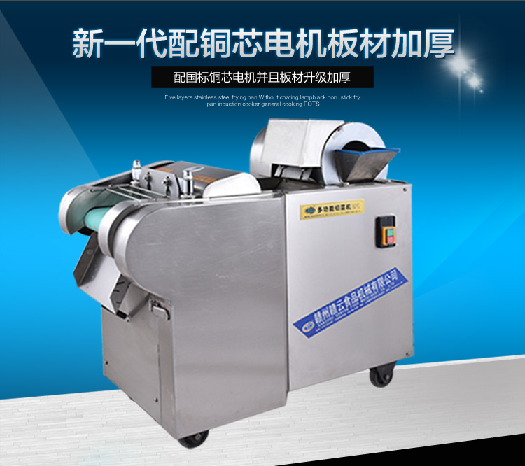 2015年新款加厚型切菜機(jī)是我廠經(jīng)過多年的切菜實(shí)踐經(jīng)驗(yàn)和客戶反饋等綜合信息考慮設(shè)計(jì)而成的,比原來的880型切菜機(jī)加厚板材,并配用全銅芯超穩(wěn)定型電機(jī)。保證產(chǎn)品質(zhì)量的同時(shí),使得產(chǎn)品外形更加美觀,更顯不銹鋼檔次。一小時(shí)可切600公斤蔬菜,切菜厚薄可調(diào)0-20mm,切片厚薄可調(diào)0-10mm,模擬手工切菜原理設(shè)計(jì)而成,采用輸送帶完美配合離心切片機(jī)構(gòu)和豎刀切菜機(jī)構(gòu),運(yùn)用手壓原理將切切成有規(guī)則的,間隙均勻的片、丁、絲、條等狀。