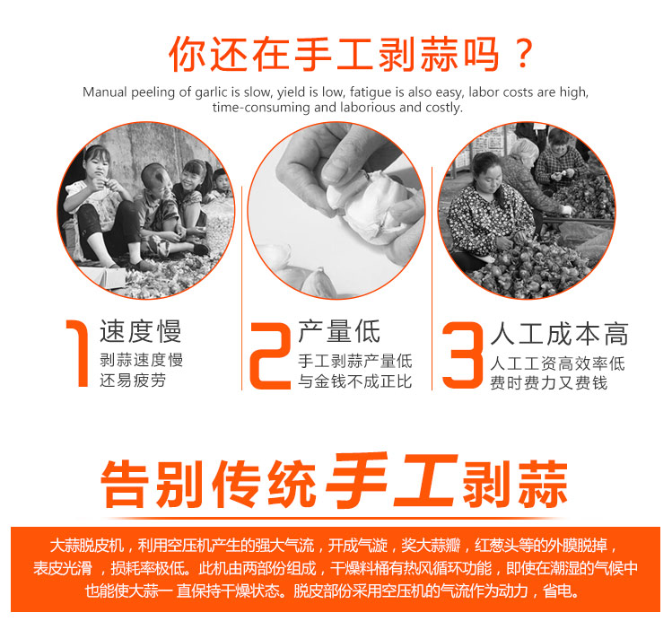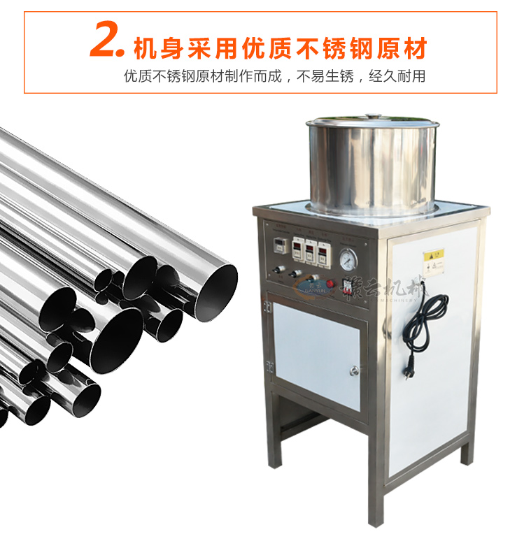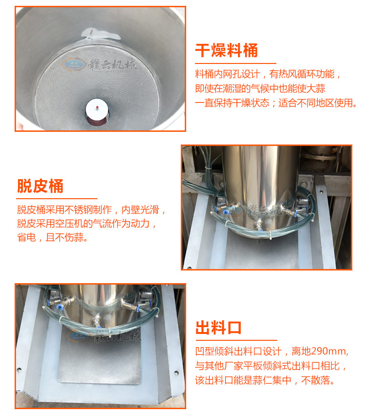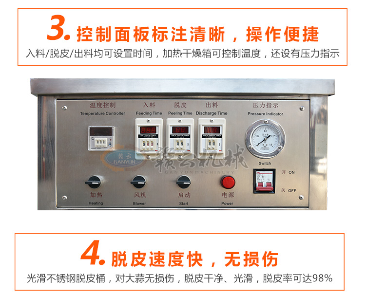 通過電、氣原理控制入料、脫皮、出料程序,實現(xiàn)完全自動化,連續(xù)工作,大大降低人力勞動強(qiáng)度