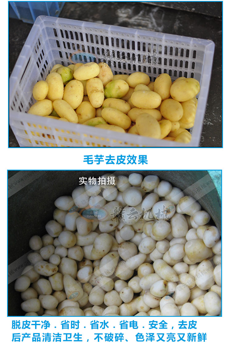 本機器具有良好的防銹.防腐.耐磨損等特點.去皮快速,清潔衛(wèi)生,可以脫毛芋頭皮,土豆(馬鈴薯)皮等,性能穩(wěn)定操作簡便,安全,可確保去皮質量,且省電省水省時間 適合農產(chǎn)品加工單位及個體加工經(jīng)營,脫皮后的芋子.土豆等,可以散裝或袋裝在各超市菜市場 分銷批另.產(chǎn)品名稱:毛芋土豆脫皮機