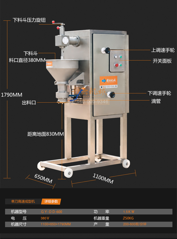 日產(chǎn)3噸的肉丸機(jī),你見過嗎?這是怎樣的機(jī)器能做的這么快,堪稱肉丸界的神*器,贛云660型單刀高速成型機(jī),每分鐘快速可成型600個肉丸,一天成型可達(dá)3噸,每小時成型約400kg,采用半開放式切刀高速來回切割,雙調(diào)速設(shè)計,適合各種肉丸成型