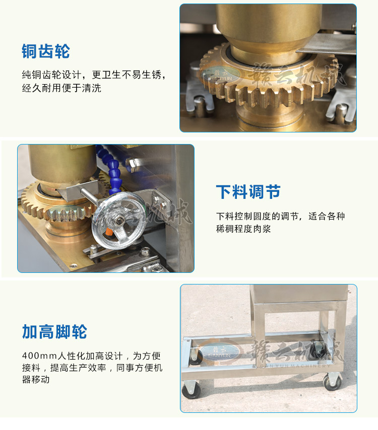 本款實(shí)心肉丸成型機(jī)是在120型實(shí)心肉丸成型機(jī)的基礎(chǔ)上加高設(shè)計(jì),是配合我司設(shè)計(jì)的雙加熱水槽而設(shè)計(jì),隨機(jī)配15、20、25MM三套成型模具,可做三種規(guī)格丸子,采用絞龍推料擠壓,切刀快速切割成型原理設(shè)計(jì),每分鐘可成型約260個(gè)肉圓,圓度可調(diào),是實(shí)心肉丸、魚丸、蝦丸、蟹丸、雞肉丸、素丸子等加工成型利器。