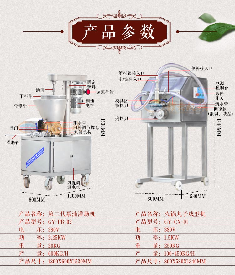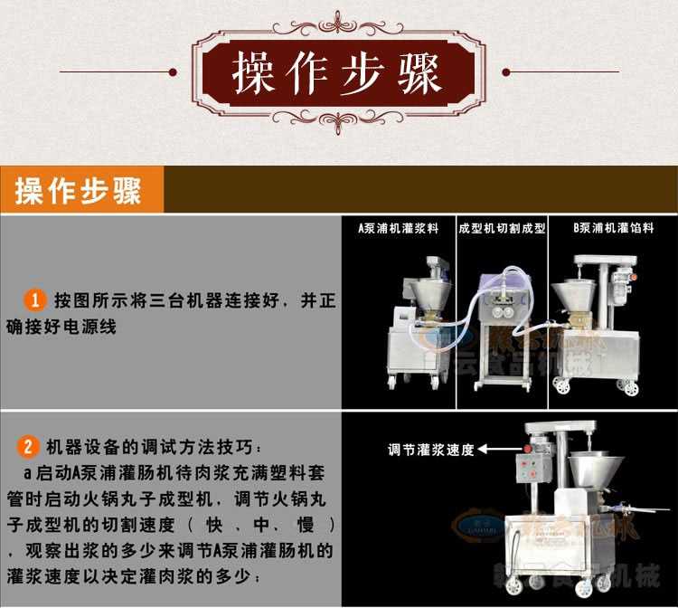 多功能火鍋料組合成型機(jī)組是由兩臺泵浦機(jī)和一臺火鍋料成型機(jī)組合而成,泵浦機(jī)起灌漿作用,火鍋料成型機(jī)起成型作用,本套成型機(jī)組可成型多種規(guī)格丸子,多種不同花色的丸子,又可稱為多樣丸子機(jī),花樣丸子機(jī),單色丸子機(jī),多色丸子機(jī)等等。