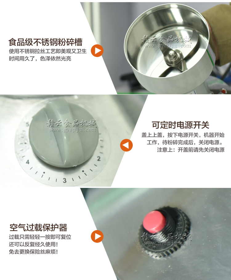 贛云系列多功能粉碎機(jī)采用純銅高速電機(jī)帶動(dòng)粉碎刀片將物料快速打成粉末,可用于粉碎五谷、雜糧、田七、阿膠、白叁等,一般粉碎時(shí)間1-2分鐘即可,新款粉碎機(jī)改保險(xiǎn)絲為空氣過載保護(hù)器,使用更安全,我廠提供的粉碎機(jī)有100克-2500克不同型號(hào)的多功能粉碎機(jī)。