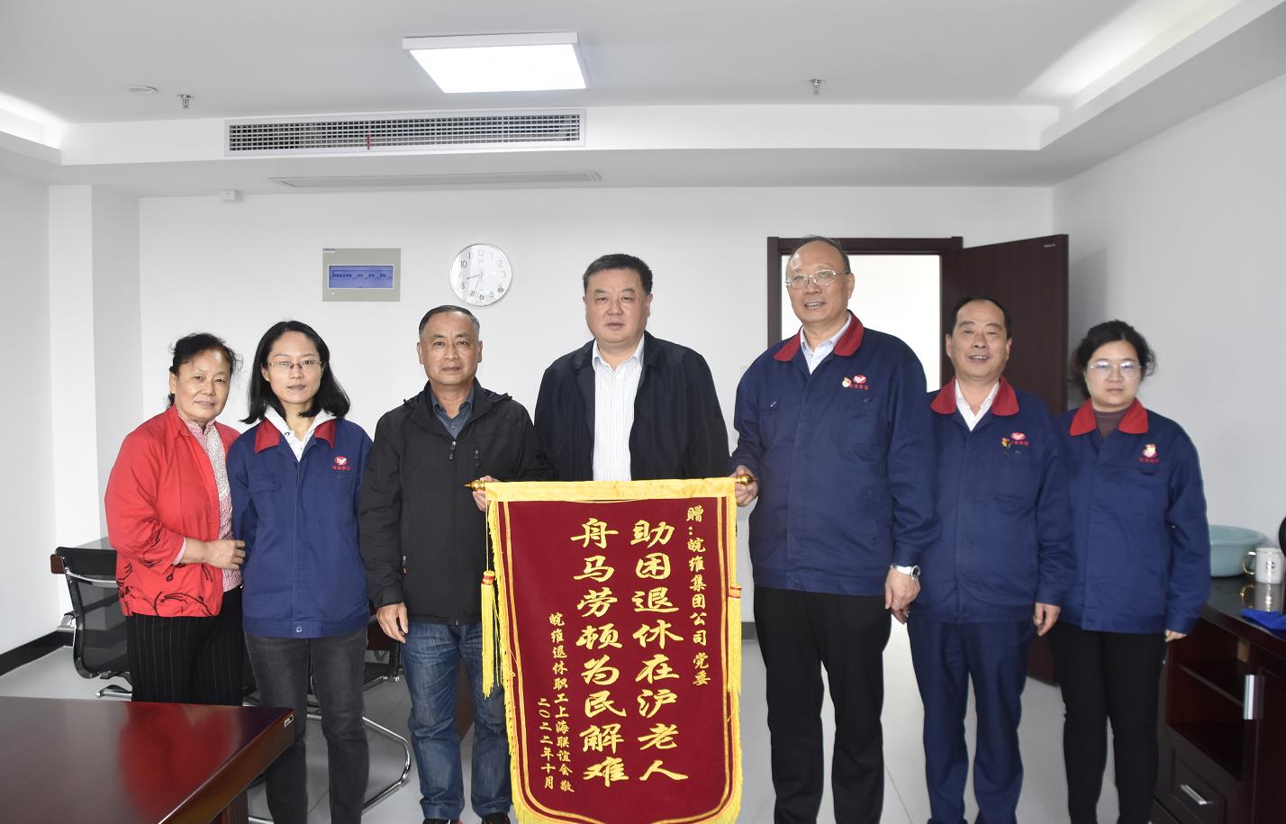 “感謝公司黨委,關(guān)心我們遠在上海的退休老職工,幫助我們解決了實際困難?!比涨埃瑑擅虾M诵堇下毠淼搅思瘓F公司黨委書記、董事長吳福勝的辦公室中,獻上一面寫有“助困退休在滬老人,舟馬勞頓為民解難”的錦旗,向公司黨委及相關(guān)部門負責人表達了真摯的感謝。