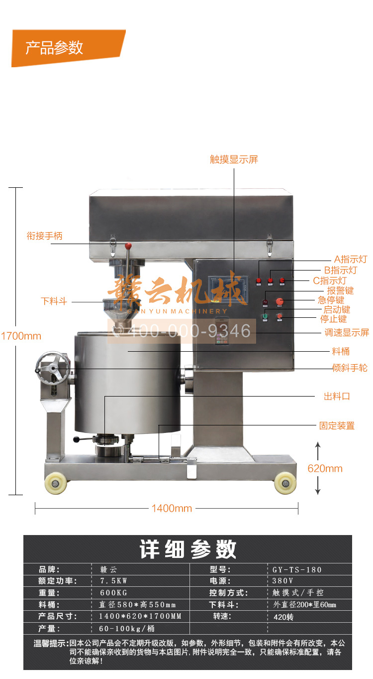 手自一體 程序智能打漿機(jī) 贛云100L 180型肉丸打漿機(jī) 簡(jiǎn)介