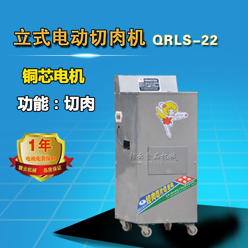 贛云牌立式切肉片肉絲機采用外表不銹鋼,主要從事鮮肉、鹵肉、香腸等肉質(zhì)品的切肉片、切肉絲加工。切肉刀片有42片,可切3.5mm肉片,動力配備220v-1.5kw-4極銅芯電機。價格為850元,我廠也提供同款機器配備相同功率的鋁線電機,價格為750元。