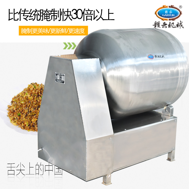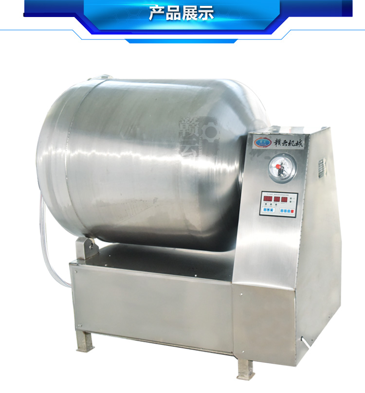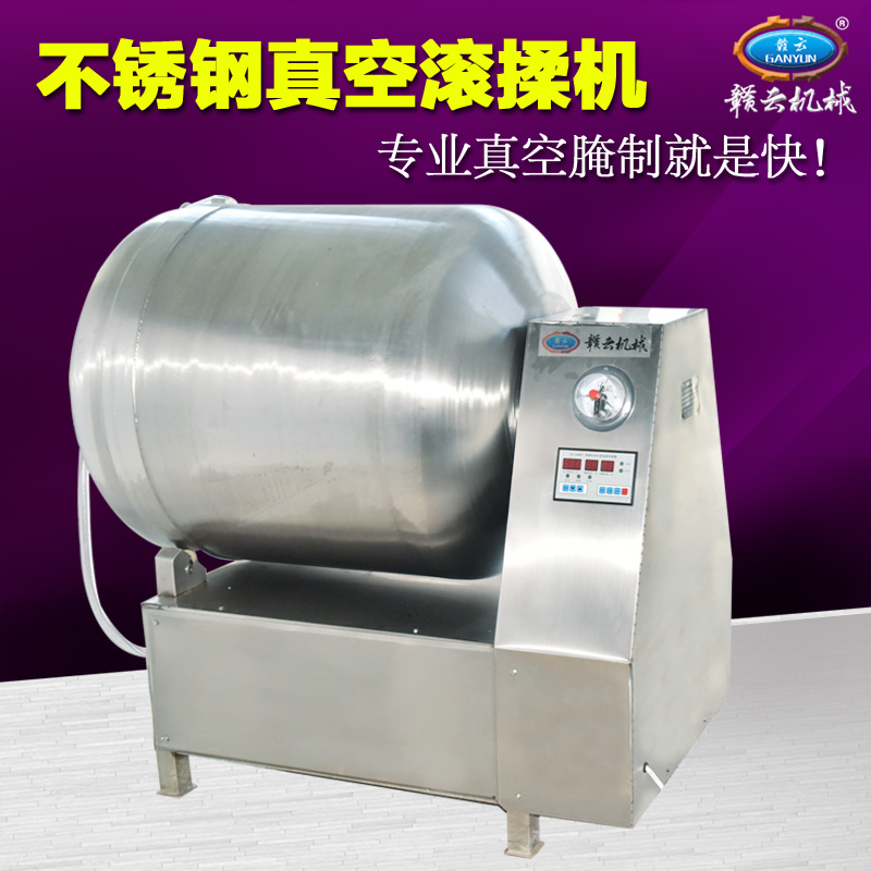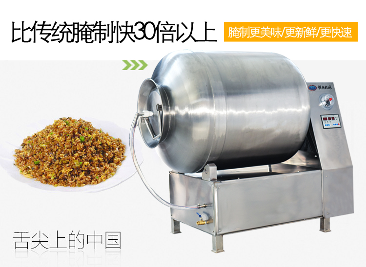 真空滾揉機可以使肉均勻的吸收腌漬,可以提高肉的結著力及產(chǎn)品的彈性;可以提高產(chǎn)品的口感及斷面效果;可以增強保水性,增加出品率;可以改善產(chǎn)品的內部結構,節(jié)能高效。整機采用不銹鋼制造,結構緊湊,滾筒兩端均采用旋壓式封帽結構,大大的增加滾筒內的摔打空間,使?jié)L揉產(chǎn)品的效果均勻,噪音小,性能可靠,操作簡便,使用效率更高。
