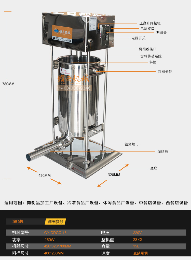 肉制品前處理->專(zhuān)用灌腸設(shè)備->電動(dòng)灌腸機(jī)15L | |||||||