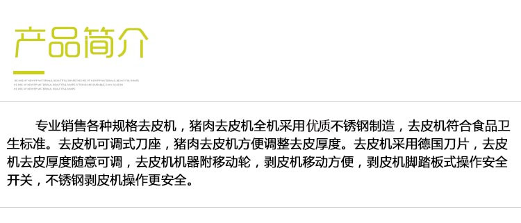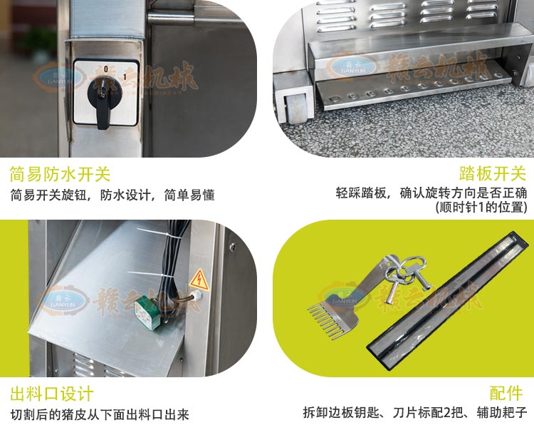 豬肉扒皮機,扒皮用什么好,扒皮機那個牌子的好豬肉去皮機扒皮機采用不銹鋼制造,去皮機符合食品衛(wèi)生標(biāo)準(zhǔn)。去皮機可調(diào)式刀座,豬肉去皮機方便調(diào)整去皮厚度。去皮機采用優(yōu)質(zhì)刀片,去皮皮厚可調(diào)節(jié),去皮機附移動輪,移動方便。扒皮機腳踏板式操作安全開關(guān),操作安全。