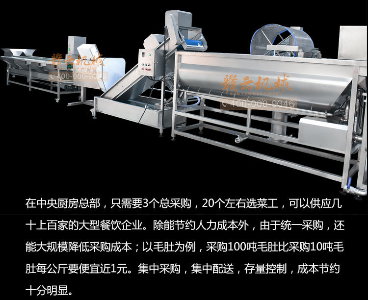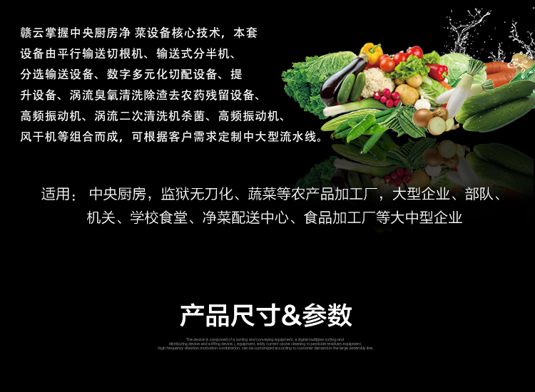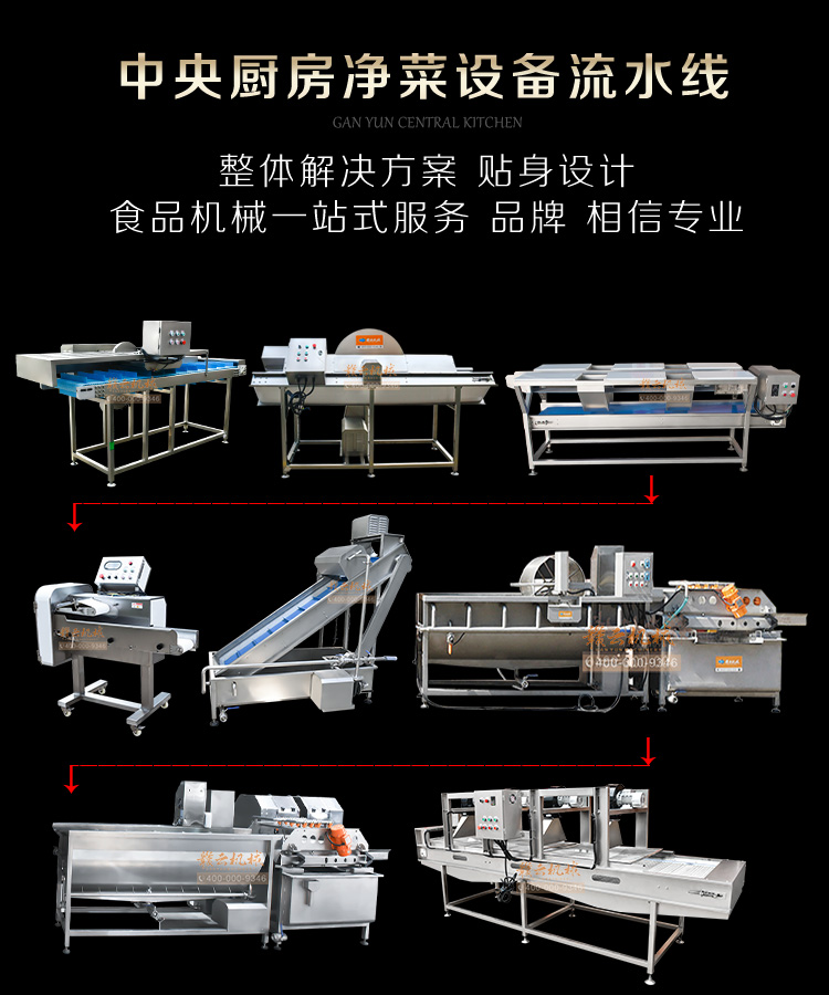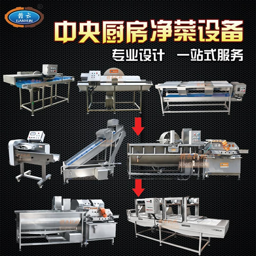 中央廚房凈菜設備流水線_食堂凈菜加工流水線_食堂切配成套設備_贛云掌握中央廚房凈菜設備核心技術,本套設備由分選輸送設備、數(shù)字多元化切配設備、提升設備、渦流臭氧清洗去農藥殘留設備、高頻振動機組合而成,可根據(jù)客戶需求定制中大型流水線。