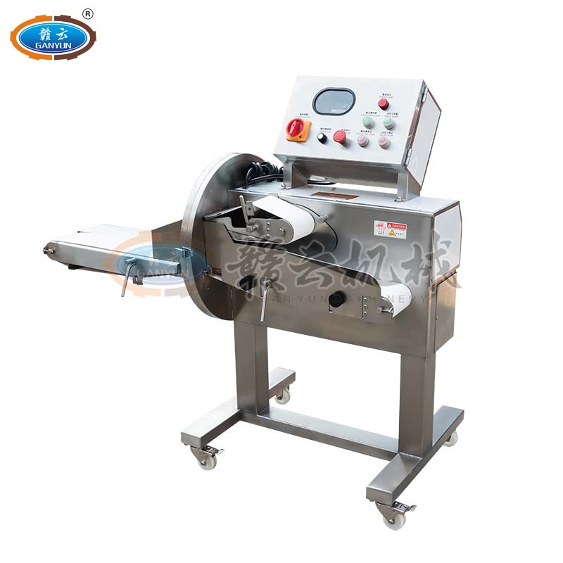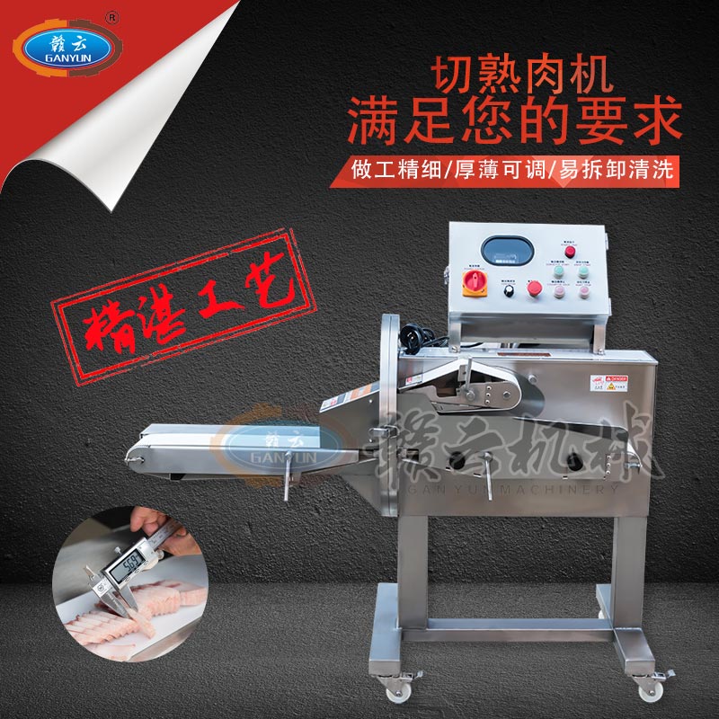 GYSQ-120D切熟肉機(jī),專業(yè)切熟肉機(jī)可切扣肉、鹵豬耳朵、五花肉等,通過調(diào)整輸送帶的速度控制切割厚度,輸送帶越快厚度越厚,越慢越薄。適用于食堂、中央廚房、餐飲配送中心、肉聯(lián)廠、大型酒店等。變頻電控箱,通過調(diào)節(jié)輸送帶速度控制切割厚度,按鍵防水設(shè)計,可拆卸輸送帶。優(yōu)質(zhì)刀片,杜絕卷刃。