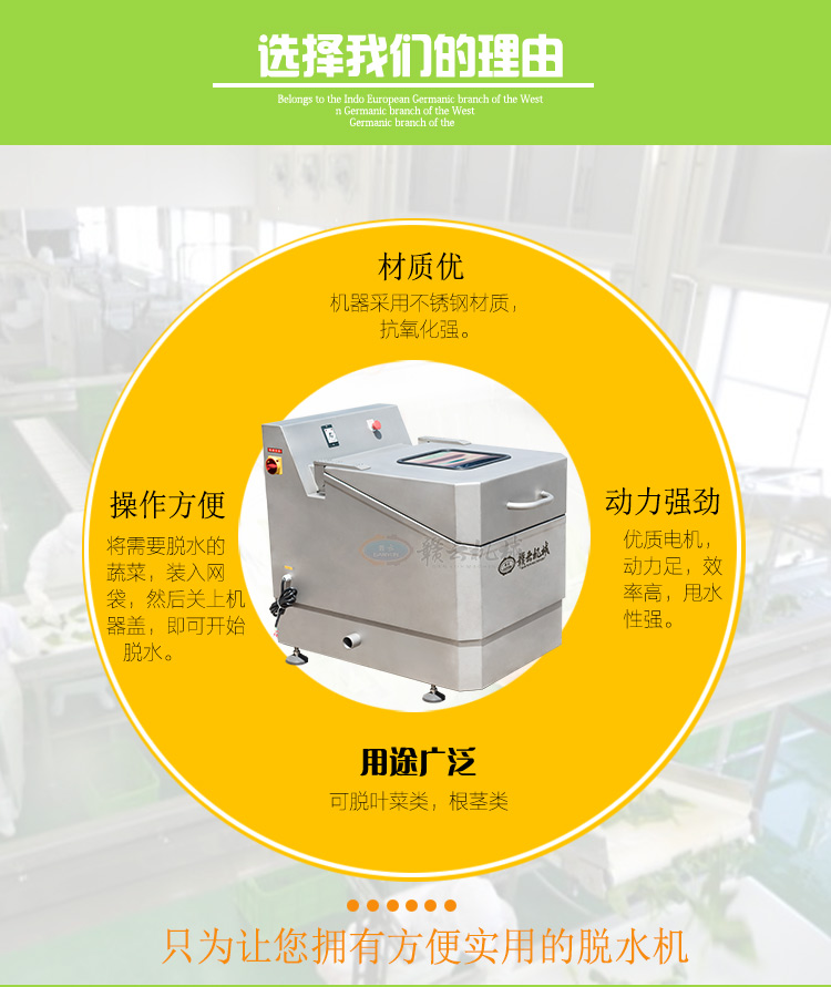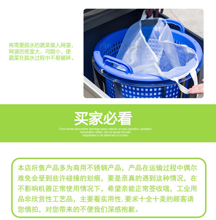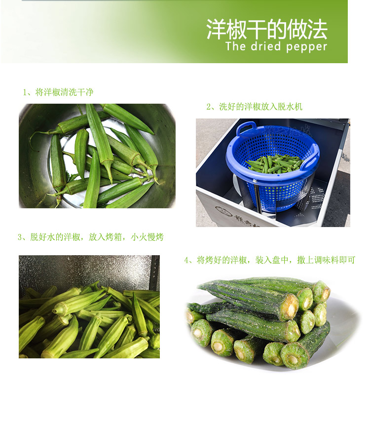 為什么要用脫水機(jī)呢?脫水機(jī)有什么用? 菜葉上有水,放兩天就焉掉發(fā)黃了,洗好的辣椒或水果,沒擦干就容易腐爛。大容量脫水機(jī),蔬菜加工好幫手,甩水性強(qiáng),動力足,效率高。將需要脫水的蔬菜,裝入網(wǎng)袋,然后關(guān)上機(jī)器蓋,即可開始脫水。可脫葉菜類,根莖類蔬菜。 洋椒干的做法 1、將洋椒洗干凈。 2、洗好的洋椒放入脫水機(jī)進(jìn)行脫水 3、脫好水的洋椒,放入烤箱,小火慢烤 4、將烤好的洋椒,裝入盤中,撒上調(diào)味料即可。
