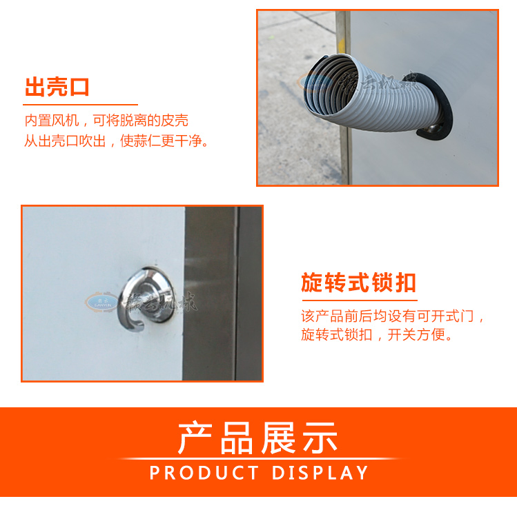 通過電、氣原理控制入料、脫皮、出料程序,實現(xiàn)完全自動化,連續(xù)工作,大大降低人力勞動強度