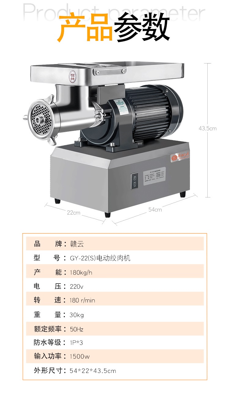 型 號: GY-22(S)電動絞肉機 品 牌: 贛云