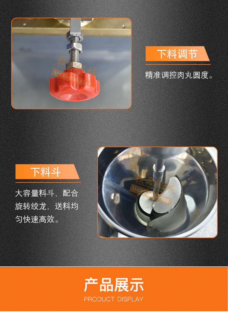贛云牌肉丸成型機采用不銹鋼材料制造,機器價格實惠,做出的丸子種類多,比如:豬肉丸、牛肉丸、魚肉丸、蘿卜丸子、土豆丸子等等,做出來的肉丸可以水煮、油炸等成型,做出的丸子圓度適中、口感和手工無任何差別。但是效率確實人工的幾倍哦。