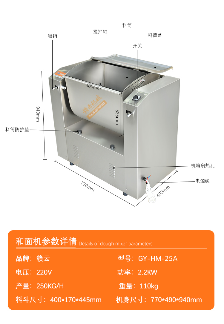 米面加工機(jī)械->和面機(jī)->25KG超靜音和面機(jī) | |||||||