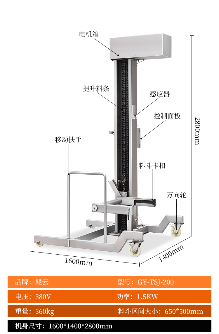 中央廚房設(shè)備->物料輸送設(shè)備->GY-200型翻斗提升機(jī) | |||||||