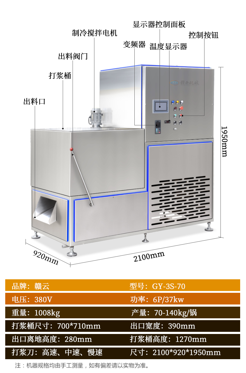 肉丸打漿機(jī)械->調(diào)速打漿機(jī)->三速制冷打漿機(jī)(70桶) | |||||||