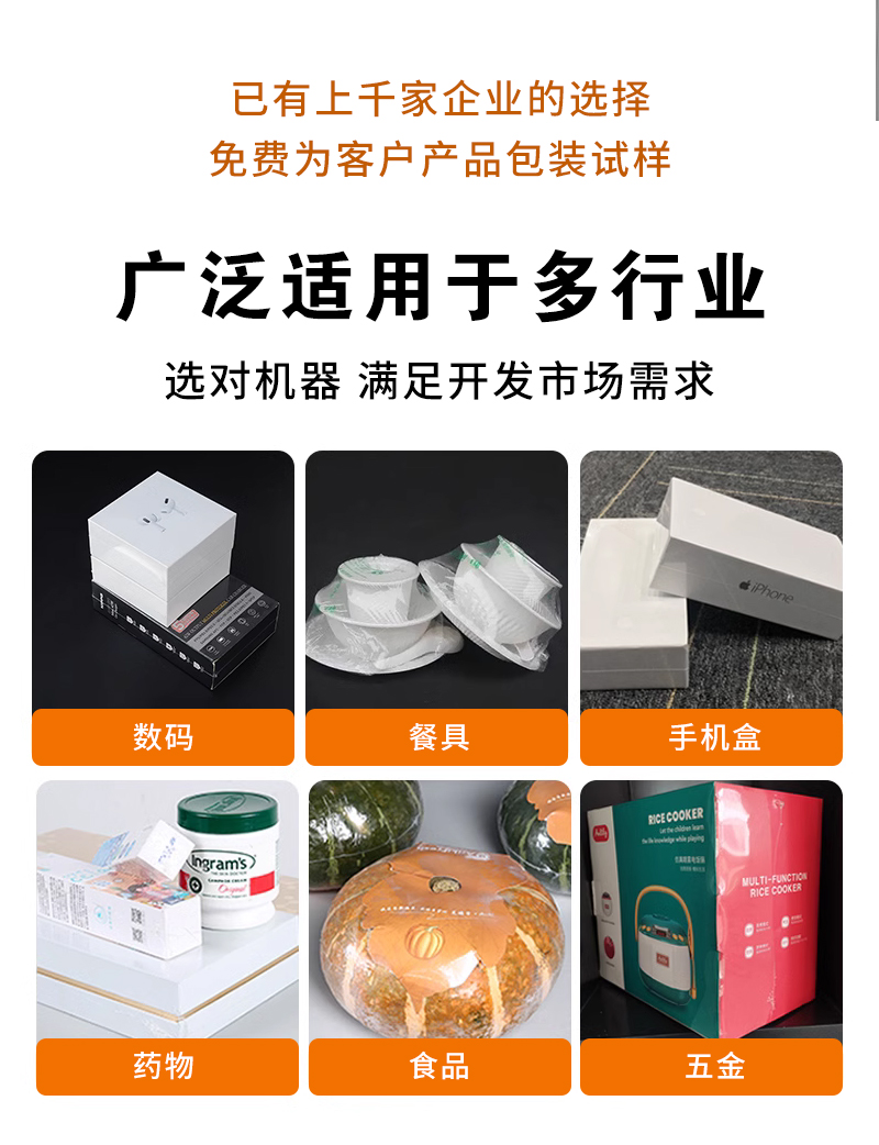 適用于數(shù)碼、餐具、手機盒、藥物、食品、五金材料等外包裝、塑封等。