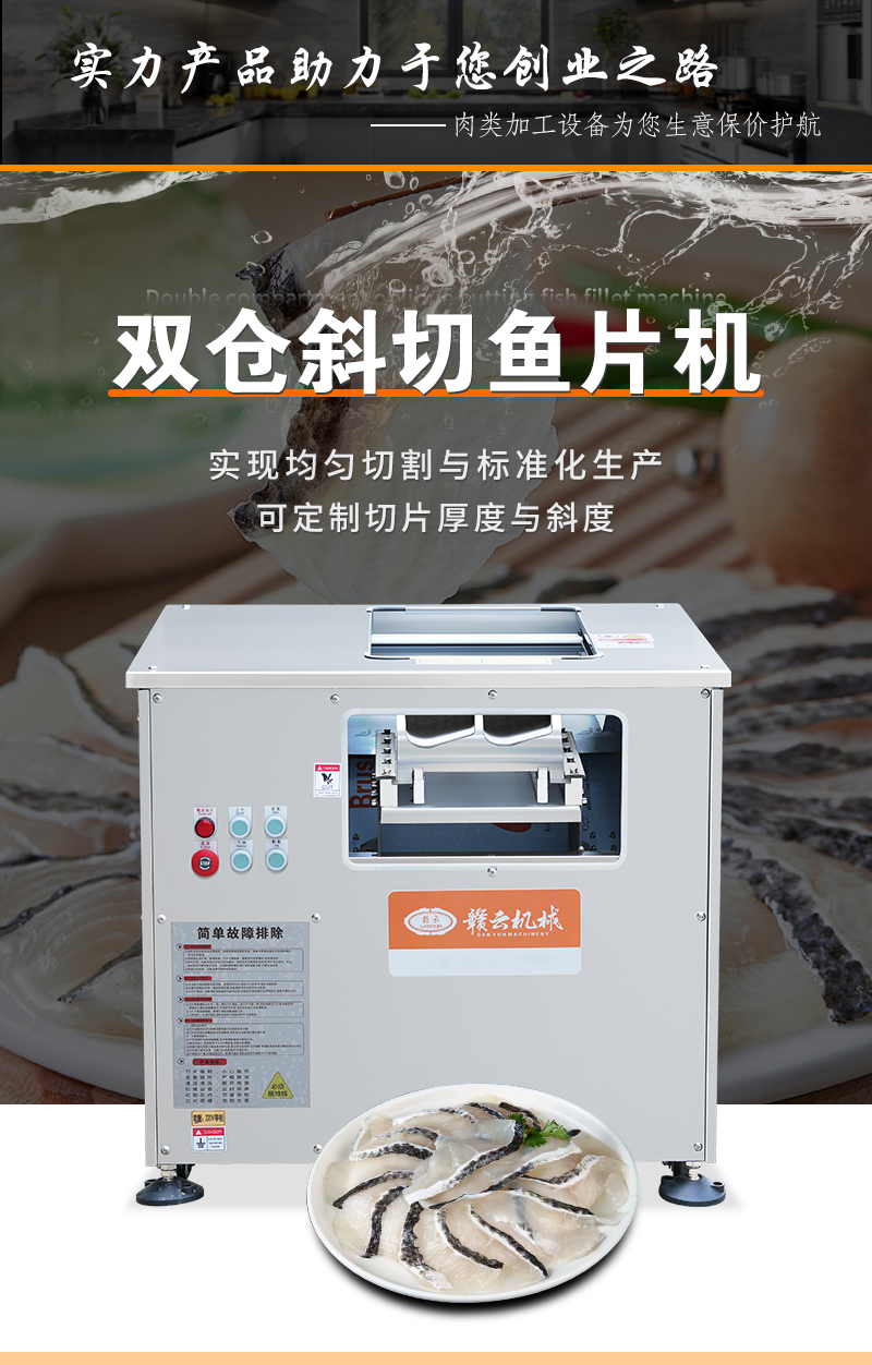 水產(chǎn)加工設(shè)備->魚肉加工設(shè)備->雙倉斜切魚片機 | |||||||