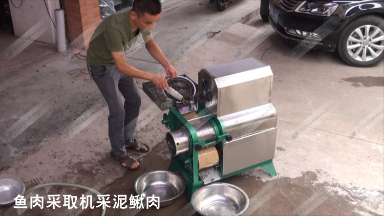 魚肉采取機(jī)又稱魚肉分離機(jī)和魚骨分離機(jī),可采取魚肉、蝦肉、泥鰍肉,本次試機(jī)演示了魚肉采取機(jī)采泥鰍肉的過程。