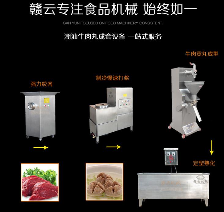 肉丸機(jī)制作肉丸的過程,因此,溫度一般控制在10℃以下,破碎粒度一般選擇在4~5mm為宜。