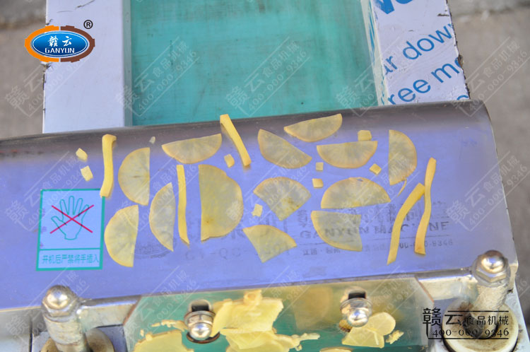 660型切菜機(jī)切腌制蘿卜片規(guī)格厚1.0-1.5mm,半弧形半徑約25mm,對于大蘿卜縱向四份開,小蘿卜縱向二分開(中間對半切開)然后放入切菜機(jī)中切出客戶想要的效果。