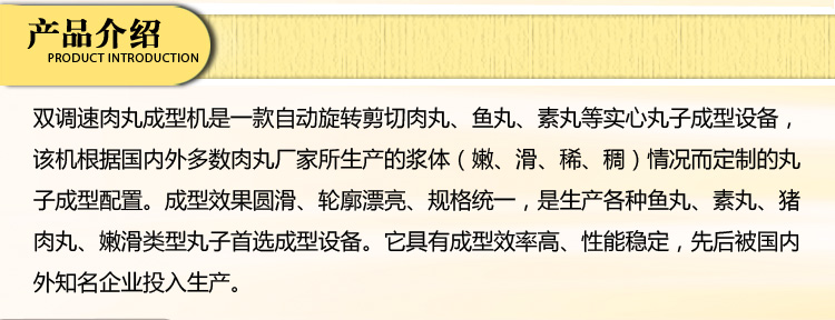 雙調(diào)速肉丸成型機(jī),這款肉類(lèi)加工廠必備的設(shè)備,可以制作實(shí)心魚(yú)丸,素丸,肉丸等,是一款自動(dòng)旋轉(zhuǎn)剪切機(jī),制作出的肉丸可以銷(xiāo)往各地,這款肉丸成型機(jī)在食堂,飯店、工廠等,是必不可少的一款加工設(shè)備,深受客戶(hù)青睞,該機(jī)根據(jù)國(guó)內(nèi)外多數(shù)肉丸廠家所生產(chǎn)的漿體(嫩、滑、稀、稠)情況而定制的丸子成型配置。成型速度可調(diào)90-500粒每分鐘,成型效果圓滑、輪廓漂亮、規(guī)格統(tǒng)一,是生產(chǎn)各種魚(yú)丸、素丸、豬肉丸、嫩滑類(lèi)型丸子首選成型設(shè)備。它具有成型效率高、性能穩(wěn)定,先后被國(guó)內(nèi)外知名企業(yè)投入生產(chǎn)。