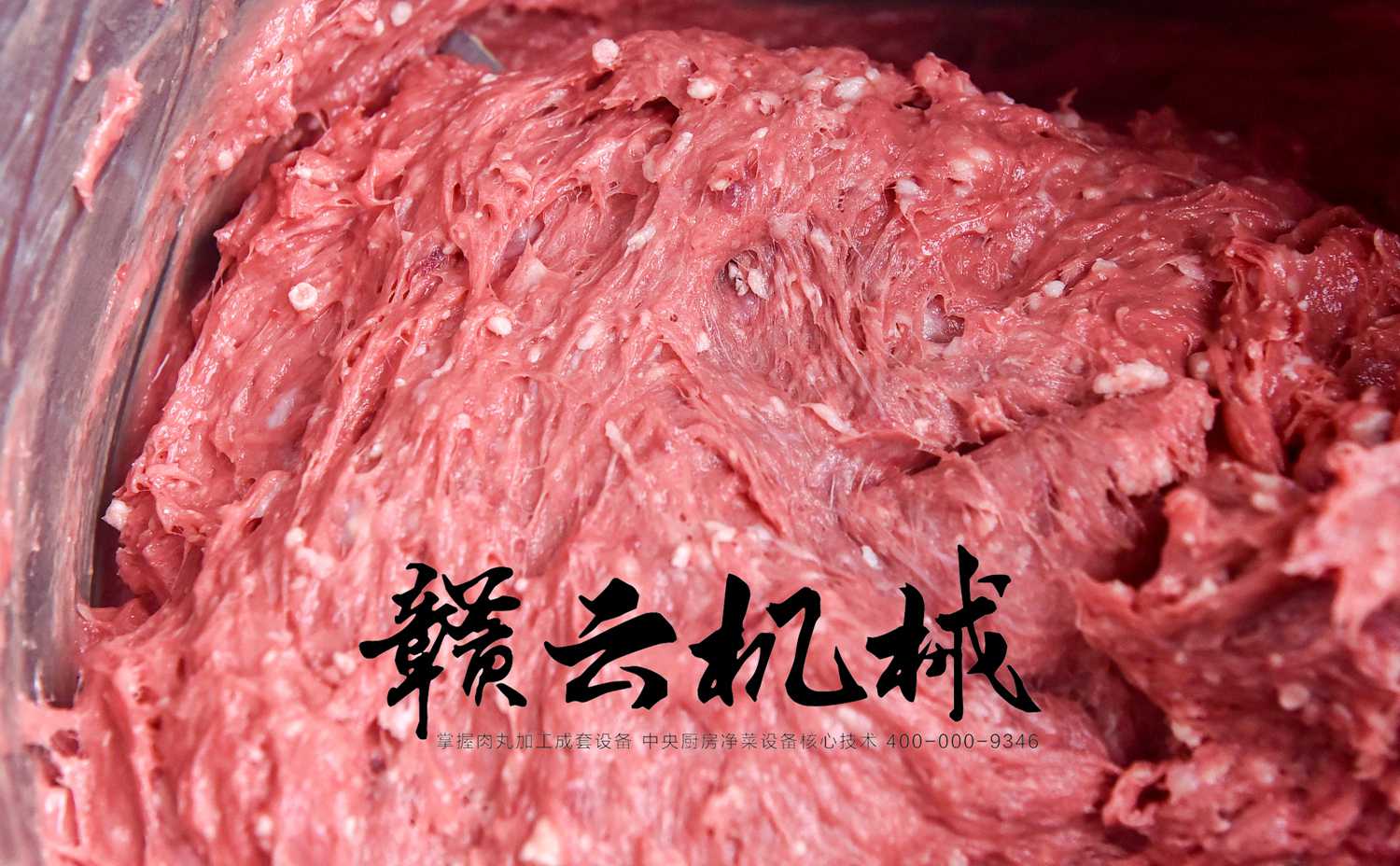 在把肉粒用打漿機制成牛肉將 過程中加入特制的調(diào)味料 打好的漿必須是拉絲狀