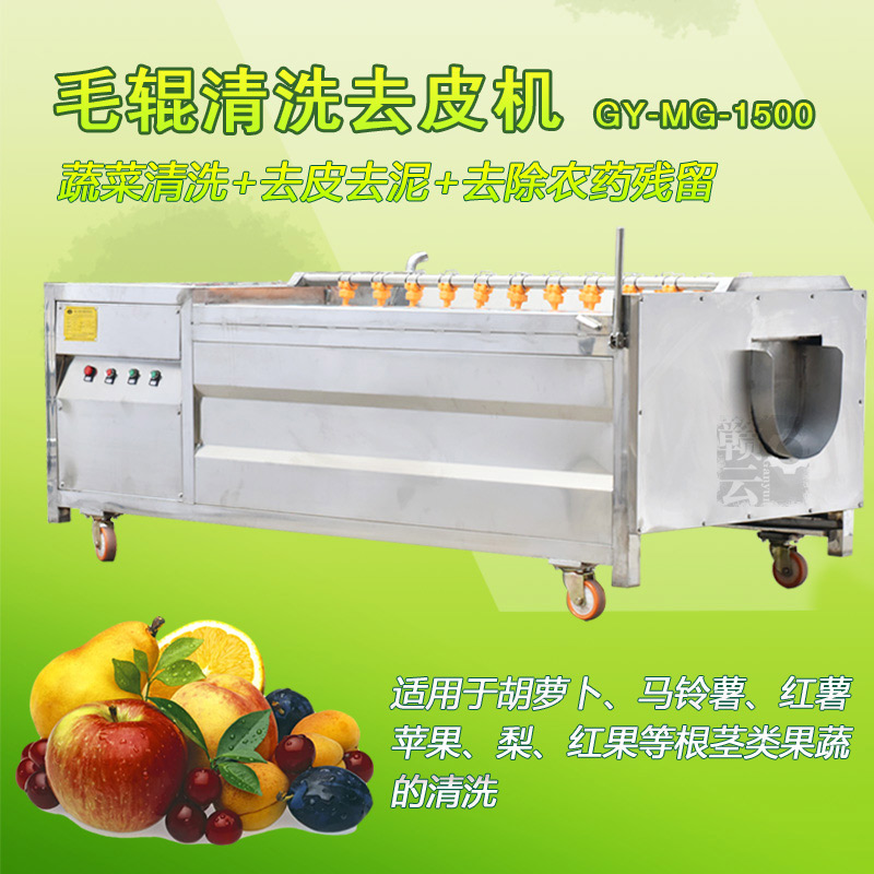 3、毛刷式清洗機(jī):毛刷式清洗方法是通過刷毛與水中物料的直接接觸,使物料表面的污物刷除洗凈,該類清洗方式適用于馬鈴薯、蘿卜等根莖類蔬菜的清洗。
