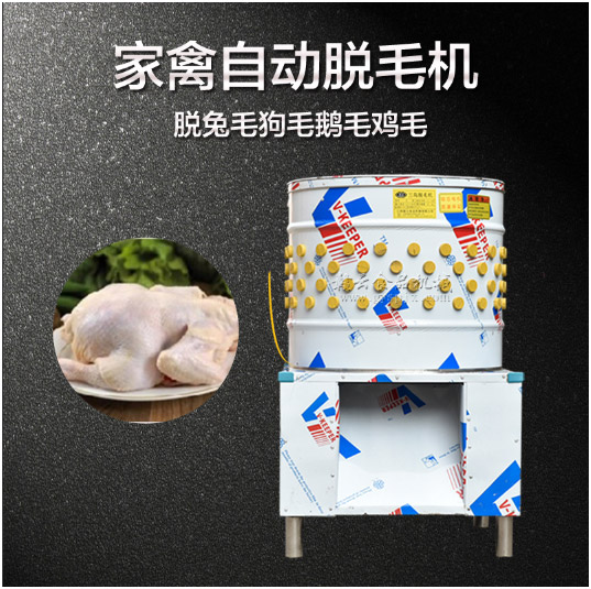 一般情況,每分鐘可加工1-2公斤的雞1-7只,1度電可脫180-200只家禽,經(jīng)濟(jì)實(shí)惠,速度是人工的拔毛十倍以上...使用要求和維護(hù):將宰好的家禽用65℃-80℃的熱水燙均勻。然后開啟機(jī)器,放入機(jī)桶內(nèi),約十來秒鐘、開啟水龍頭,使毛或姜皮等沖出。稍刻便可停機(jī)取出,雞毛一般只需半分鐘脫凈,其它時(shí)間稍長(zhǎng).