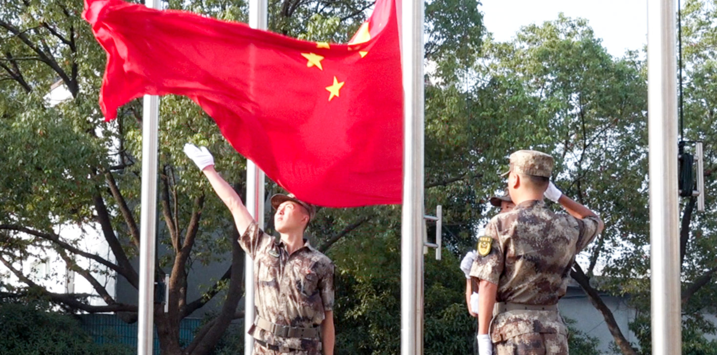 ? 隨著鮮艷的名族大旗緩緩升起,全體人員行注目禮,并伴著音樂(lè)高唱國(guó)歌“起來(lái),不愿做奴隸的人們,把我們血肉筑成我們新的長(zhǎng)城……”