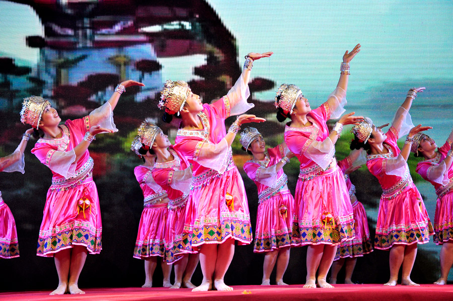 廣西皖維公司的職工們帶來了舞蹈《壯鄉(xiāng)情韻》。與內(nèi)蒙豪邁粗獷不同的是,廣維職工的表演細膩、深沉,帶有濃濃的壯鄉(xiāng)風情,把現(xiàn)場職工帶進了劉三姐的故鄉(xiāng)。表演結(jié)束后,廣維的姐妹還以傳統(tǒng)的拋繡球方式,進步把現(xiàn)場氣氛推向高潮。