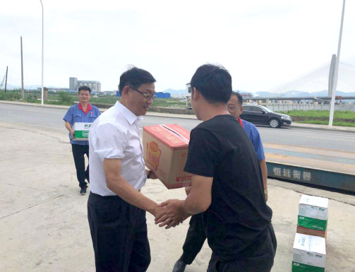 當(dāng)?shù)弥埠袓弾X社區(qū)借用物流公司碼頭辦公室作為裕溪河大堤防汛抗洪臨時值班點時,余明祥帶著礦泉水、速食面包、方便面等物資,慰問防汛抗洪線干部職工。余明祥表示:“向奮戰(zhàn)在防汛抗洪搶險線的崗嶺社區(qū)黨員干部群眾致敬。”