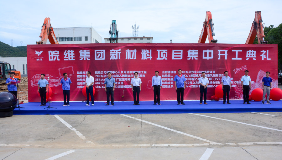 8月6日上午,集團公司年產(chǎn)700萬平方米PVA光學薄膜等10個新材料項目舉行集中開工儀式。巢湖市委書記、安徽巢湖經(jīng)開區(qū)管委會主任耿延強與集團公司黨委書記、董事長吳福勝出席開工儀式并共同宣布10個新材料項目集中開工。巢湖市委副書記、市長張紅軍與集團公司黨委副書記、總經(jīng)理高申保在開工儀式上發(fā)表講話,安徽巢湖經(jīng)開區(qū)管委會黨工委副書記程習龍、巢湖市人大常委會主任周恩平、政協(xié)主席王興濤等出席開工儀式,儀式由股份公司總經(jīng)理孫先武主持。