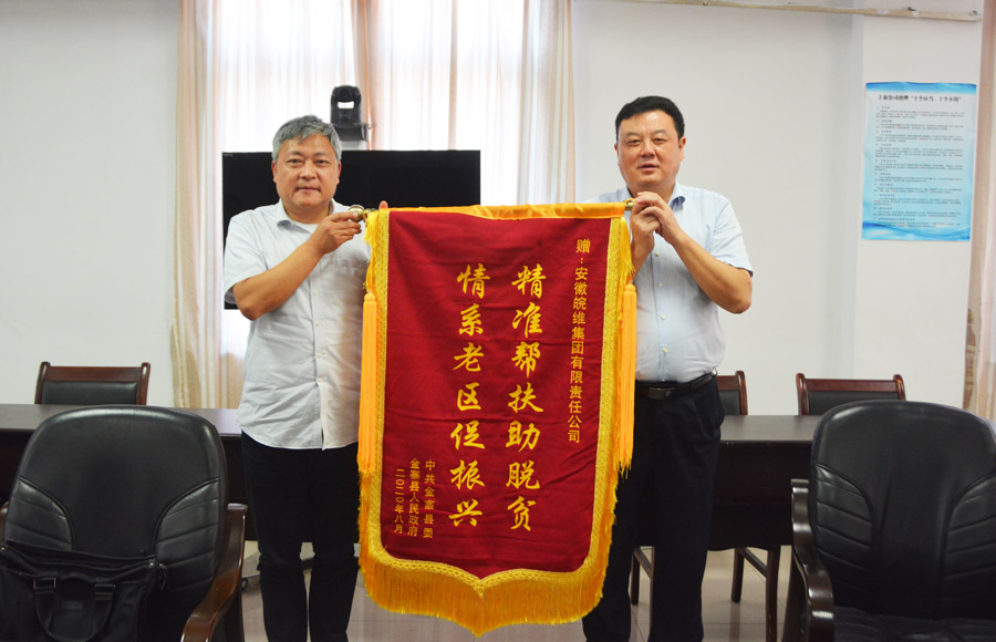 8月24日,公司收到了份特殊的“禮物”,由金寨縣委副書記、縣長汪冬行冒著酷熱送來的封感謝信,以及面印有“精準幫扶助脫貧、情系老區(qū)促振興”的錦旗。