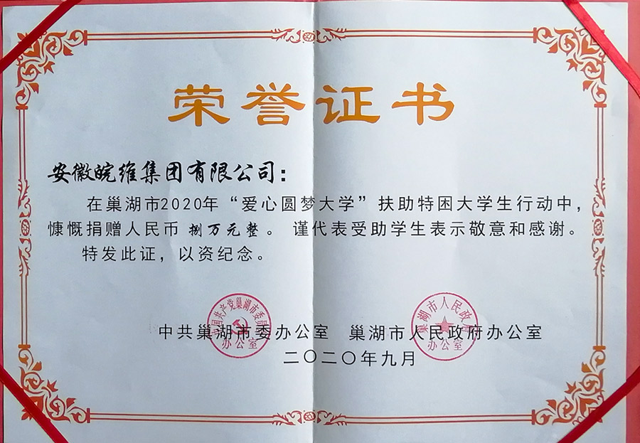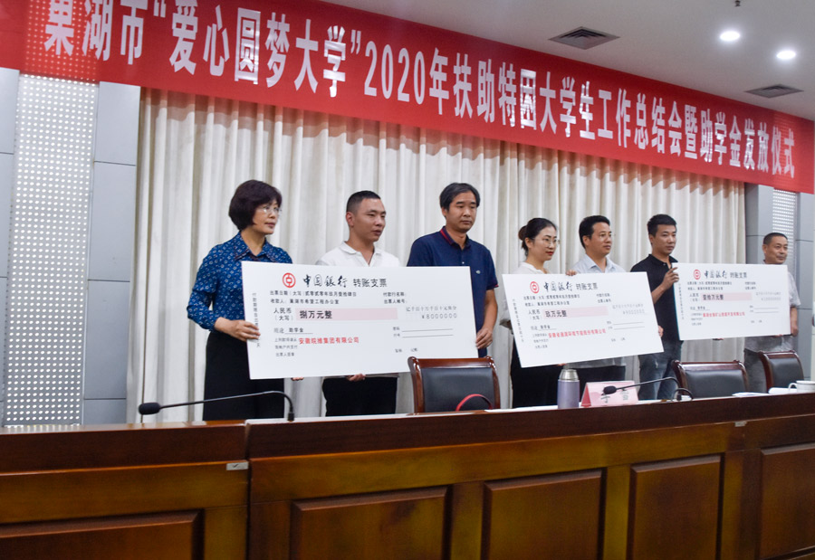 9月14日下午,巢湖市“愛心圓夢(mèng)大學(xué)”2020年扶助特困大學(xué)生工作總結(jié)會(huì)暨助學(xué)金發(fā)放儀式在市行政會(huì)務(wù)中心首要會(huì)議室舉行。集團(tuán)公司黨委委員、副總經(jīng)理劉幫柱代表皖維出席,為貧困學(xué)子捐贈(zèng)助學(xué)金。