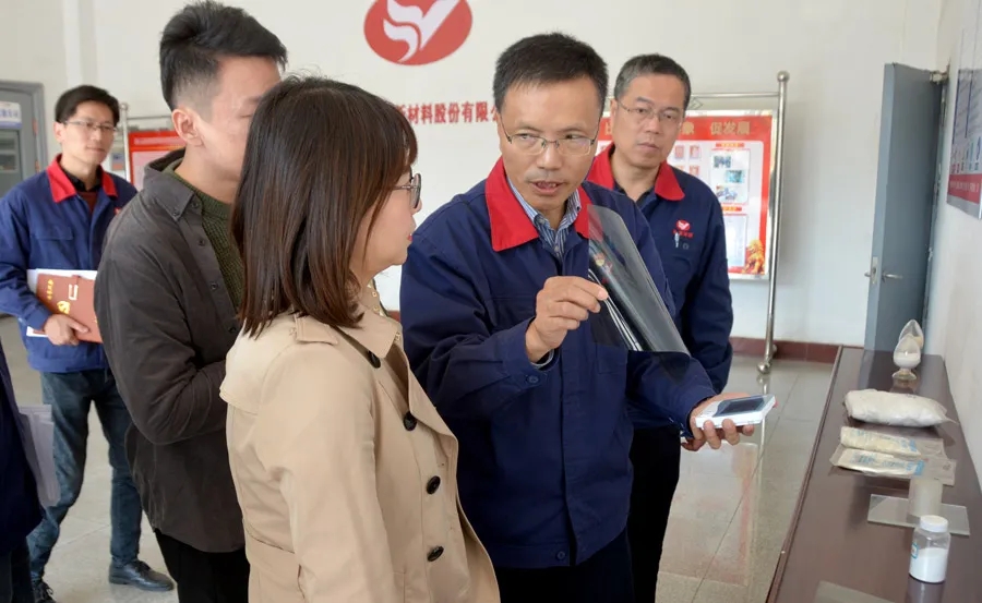錢文一行首先來(lái)到PVA膜分廠。高申保向來(lái)賓介紹了公司新建、擬建的重點(diǎn)項(xiàng)目,他表示,當(dāng)前公司正全力推動(dòng)產(chǎn)業(yè)轉(zhuǎn)型升級(jí),以高新技術(shù)作為發(fā)展動(dòng)力,建設(shè)行業(yè)世界當(dāng)先“品質(zhì)皖維”。公司響應(yīng)創(chuàng)新驅(qū)動(dòng)發(fā)展戰(zhàn)略,聚焦PVA光學(xué)膜等關(guān)鍵產(chǎn)品的研發(fā),經(jīng)過(guò)多年研究,已實(shí)現(xiàn)了產(chǎn)品產(chǎn)業(yè)化。此外,為進(jìn)一步攻關(guān)高端PVA膜的關(guān)鍵重要技術(shù),公司還與中國(guó)科學(xué)技術(shù)大學(xué)成立聯(lián)合實(shí)驗(yàn)室,已在多個(gè)方面取得重要進(jìn)展,為產(chǎn)品打破國(guó)外壟斷,加速推動(dòng)顯示行業(yè)國(guó)產(chǎn)化作出了皖維貢獻(xiàn)。