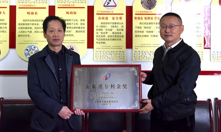 皖維集團推薦的“一種高純度聚乙烯醇的生產(chǎn)方法”發(fā)明專利,經(jīng)網(wǎng)上申報、推薦、專家評審、審核確定、公示等程序,7月17日被省知識產(chǎn)權(quán)局評定為第七屆安徽省專利金獎,11月5日頒發(fā)獲獎證書。