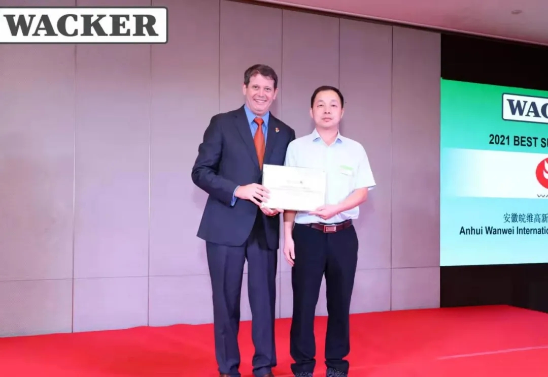 ? 公司國際貿易部經理程衛(wèi)彬代表公司前往領獎,并表示將繼續(xù)在質量、服務能力、可持續(xù)發(fā)展和可信賴的長期合作等領域積極努力,與瓦克保持良好合作。