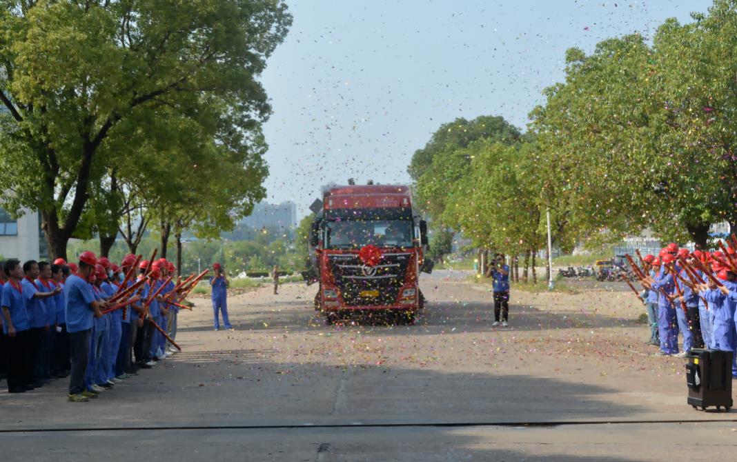 在掌聲和禮炮聲中,吳福勝宣布VAE乳液項(xiàng)目關(guān)鍵核心設(shè)備正式入廠。